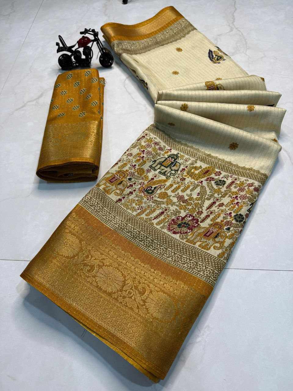 | Name : | PIYU 1044 RECCO HATHI Yellow Saree |