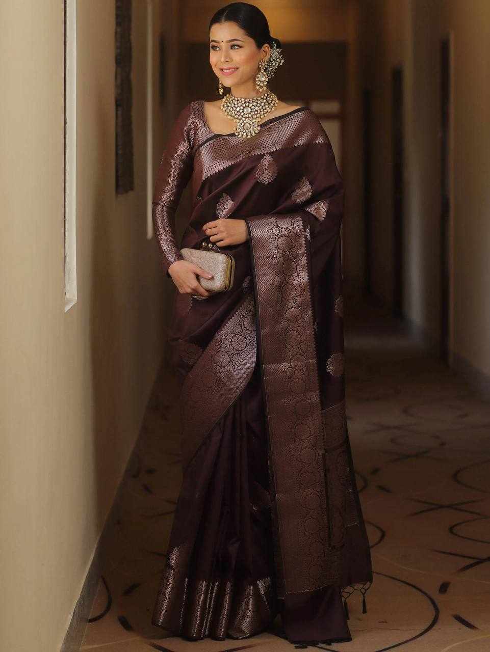 Design: Beautiful rich pallu with intricate jacquard work woven all over the saree, adding a luxurious and graceful appeal