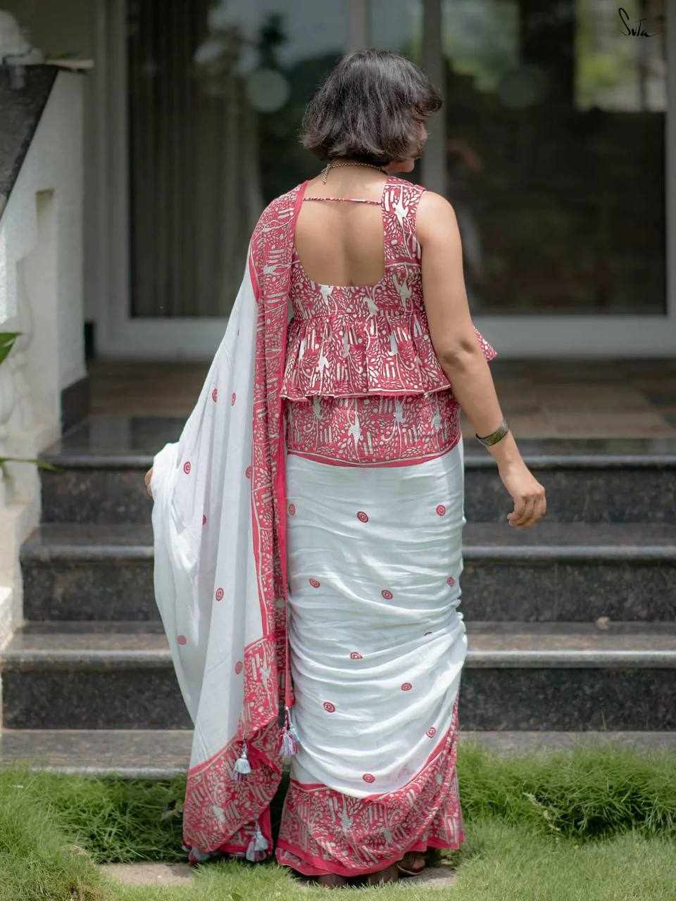 Blouse Fabric: Linen Cotton with matching digital print (same as model wear)