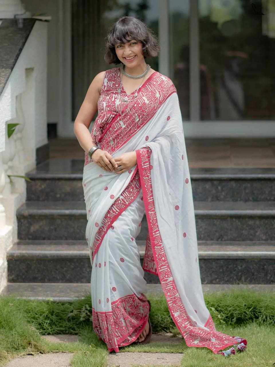 Saree Fabric: Premium Linen Cotton with beautiful digital print