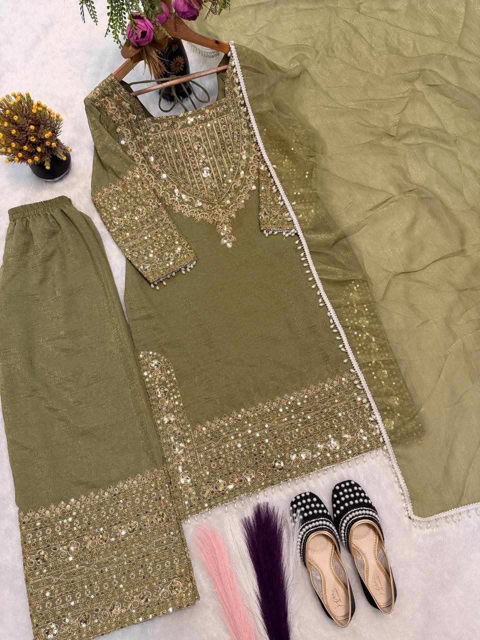 • Fabric: Heavy Crunchy Silk with Heavy Thread Embroidery & Sequence Work