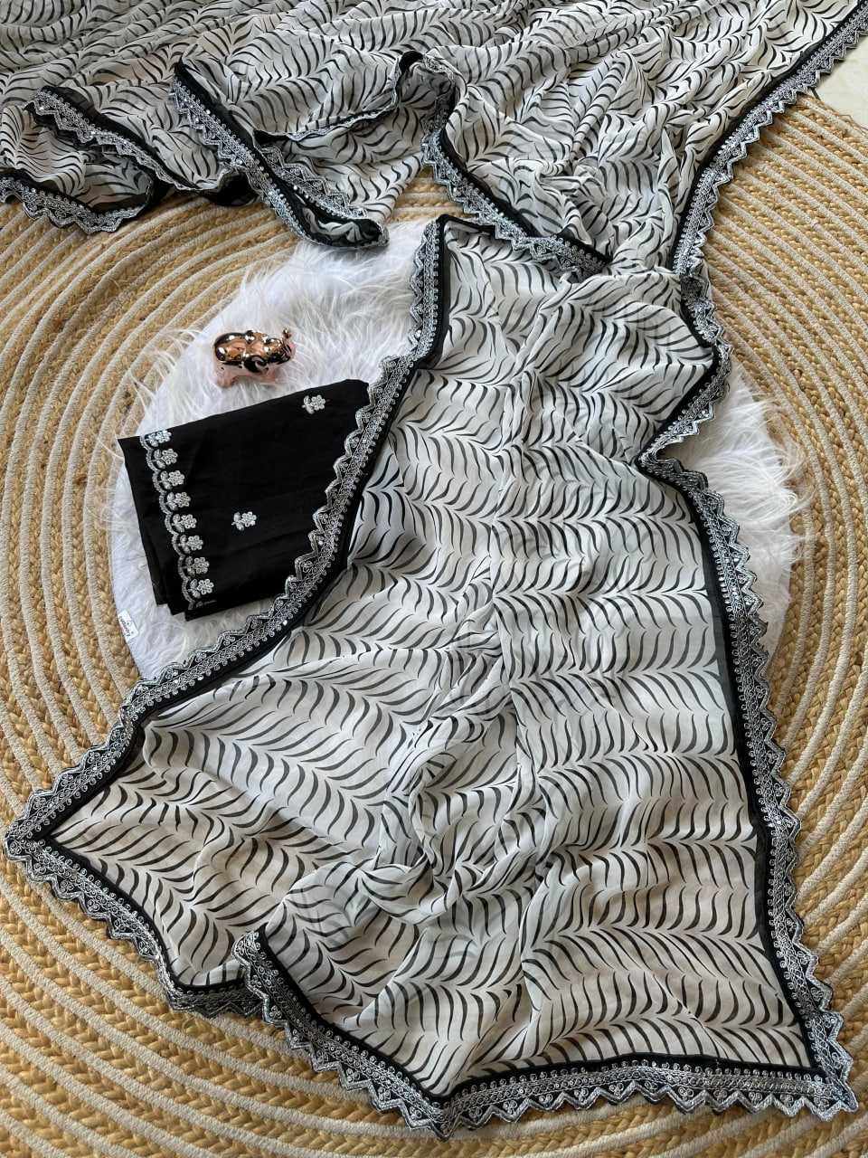 Crafted with graceful georgette and detailed coding embroidery lace work, this saree gives a rich and classy look. Perfect for festive occasions, parties, weddings, and special celebrations.